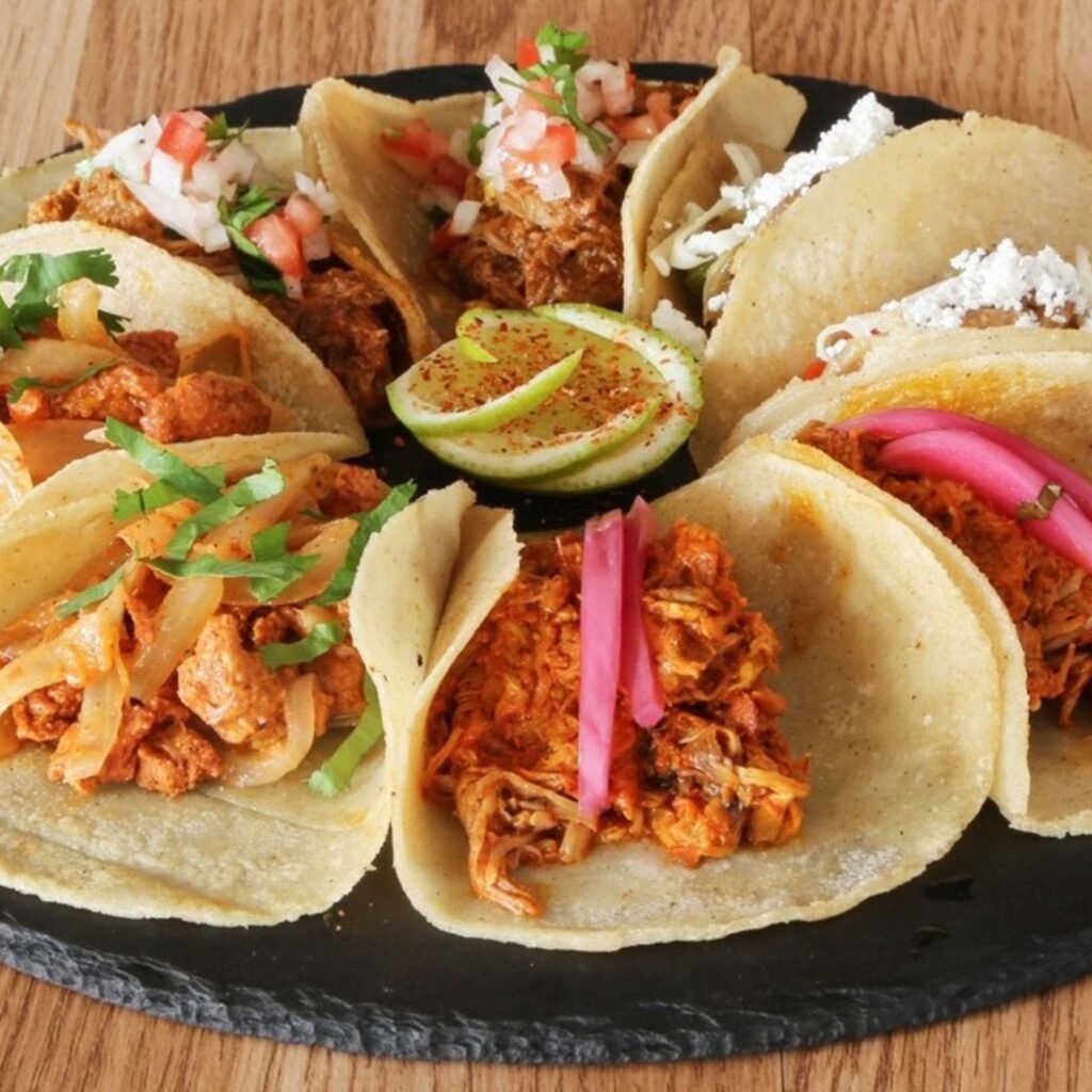 - Ronda de tacos artesanales: tortillas de maíz recién hechas, rellenas con carne marinada, verduras frescas y salsas caseras. Una explosión de sabor en cada bocado.